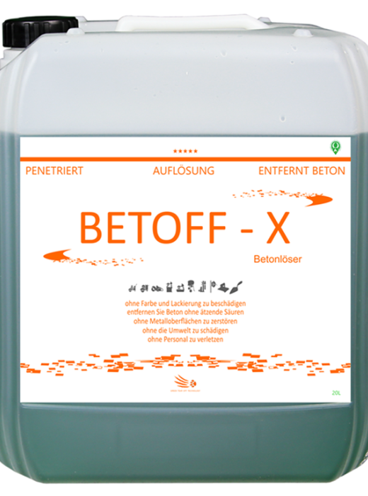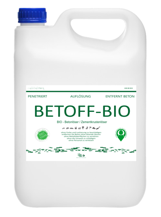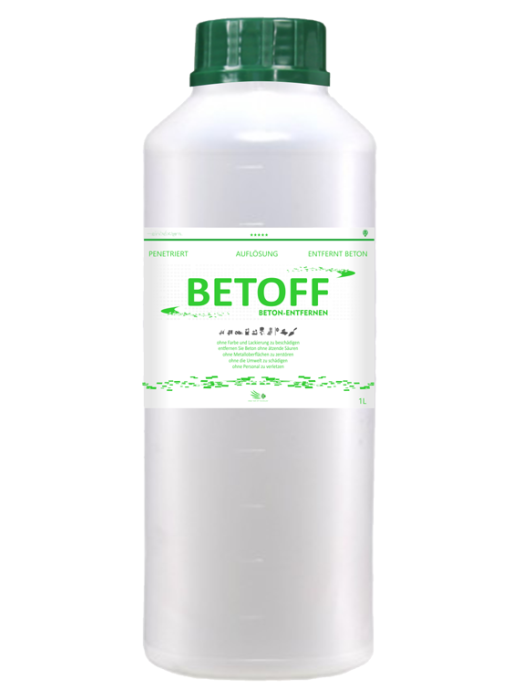 BETOFF-BIO er et præparat som egnes til alle slags følsomme og delikate overflader såsom karosseri, lak, ruder og mange flere! Det er et ikke-ætsende middel, som dog er lige så stærkt som andre – ætsende – betondestruktive midler på markedet.